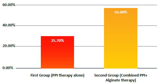 Alginate-based formulations have been shown to act more rapidly than PPIs and H2 antagonists,8 and to provide longer-lasting relief of symptoms than conventional antacids. These formulations have been shown to provide effective relief of upper gastrointestinal (GI) symptoms, either as a monotherapy or in combination treatment. These findings suggest that alginate-based formulations could be considered as an alternative or add-on therapy in GERD patients, including those with non-erosive reflux disease or NERD.9